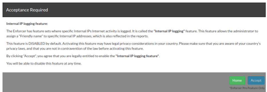 To select the Privacy Policy please login into your Enforcer Account and attempt to generate a Specific User Report. The Portal will then show you this screen: